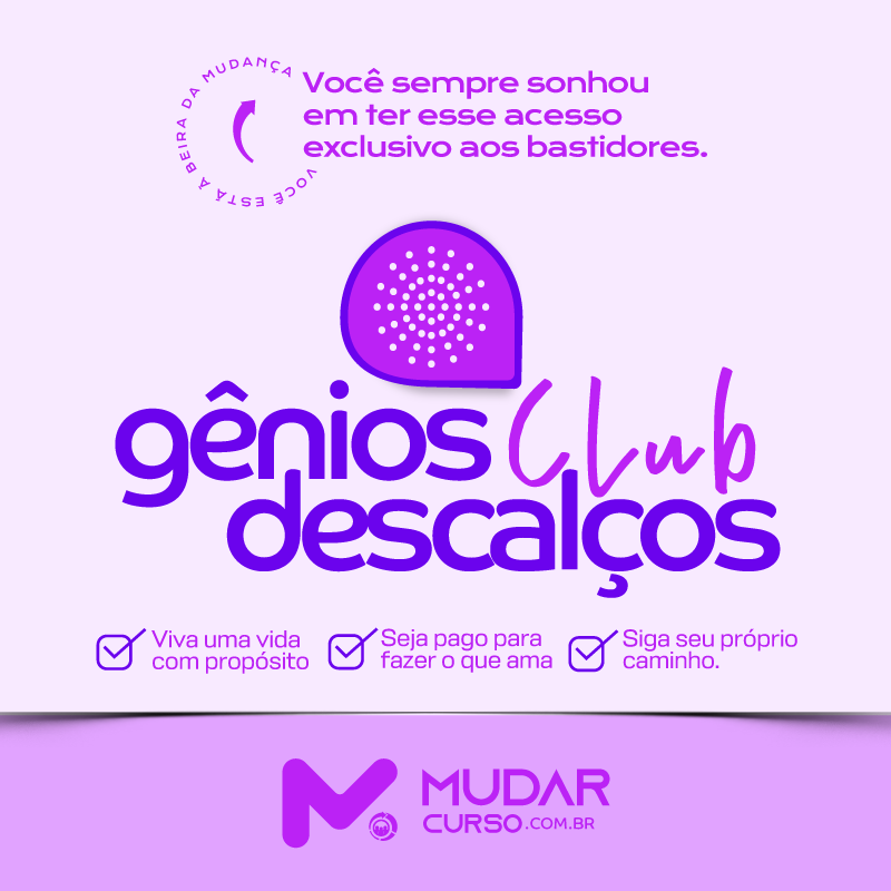Se isso ressoa com você, venha fazer parte do clube! O Clube Gênios Descalços é o lugar onde você pode iniciar uma nova vida, ganhando um bom dinheiro fazendo o que ama, e começando agora mesmo.